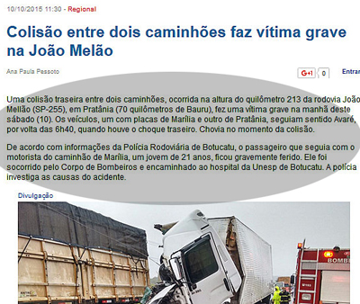 O que ele e nem a família poderiam imaginar que este sonho iria se transformar num drama: ele foi vítima de um gravíssimo acidente na rodovia João Melão, em Pratânia (a 190 km de Marília), quando voltava de mais uma viagem.