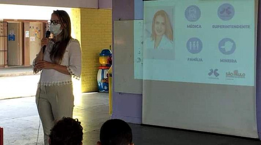 Os alunos da escola estadual Professor Antônio Gomes de Oliveira, localizada no bairro Lorenzetti, em Marília, tiveram uma aula especial diferente na primeira semana de volta às aulas presenciais. Eles tiveram uma palestra com a superintendente do complexo HC/Famema, Dra Paloma Libânio.