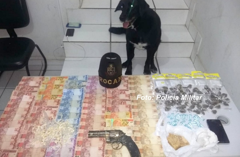 Os policiais fizeram um cerco na região e depararam com duas pessoas que, ao perceberem a chegada das viaturas, saíram correndo. Um rapaz de 24 anos ainda tentou resistir. Ele estava com uma réplica de arma de fogo tipo revólver, uma sacola contendo porções grande de crack, também em seu poder a importância de 352,00 em notas diversas. Em sua casa a importância de 800,00.