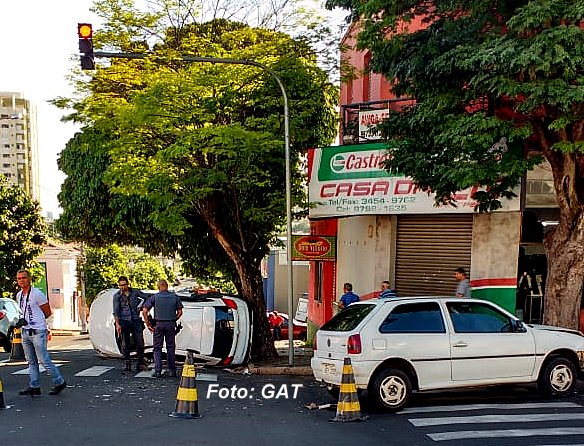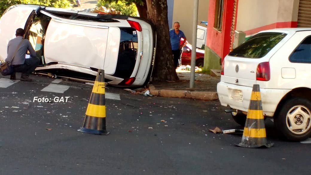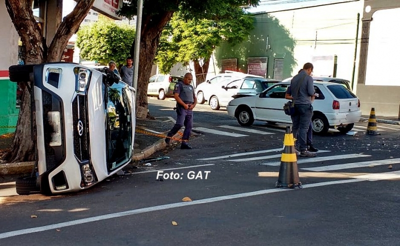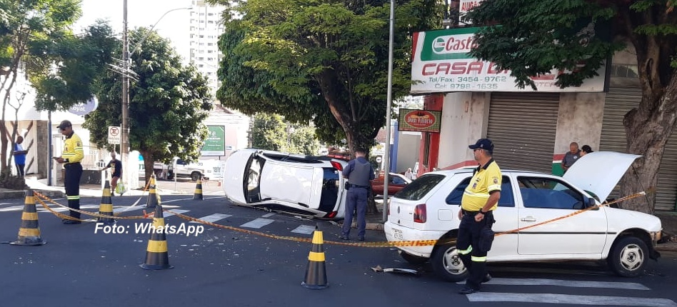 Nesta manhã, dois carros bateram - e um deles chegou a capotar - no cruzamento da avenida República com a rua Amazonas, próximo ao centro da cidade, deixando duas pessoas feridas.