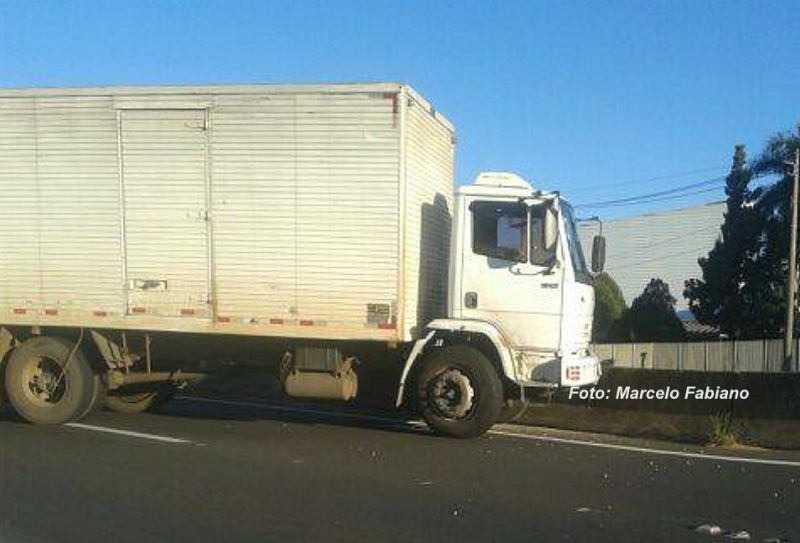 Um caminhão, tipo baú, que trafegava pela rodovia do Contorno, por pouco não causou um acidente mais grave no final desta tarde. De acordo com a Polícia Rodoviária, o veículo apresentou um defeito mecânico e o motorista conseguiu "jogar" para o muro de concreto que divide as pistas.