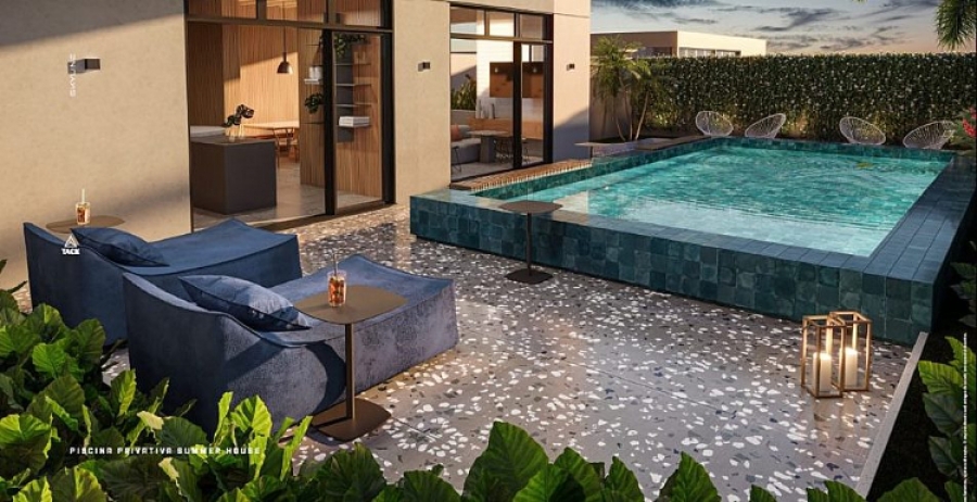 Marini revelou que a área comum terá uma piscina com borda infinita com vista para o vale. O empreendimento contará ainda com o summer house, um salão de festas exclusivo com piscina, que poderá ser alugado para eventos privativos do morador.