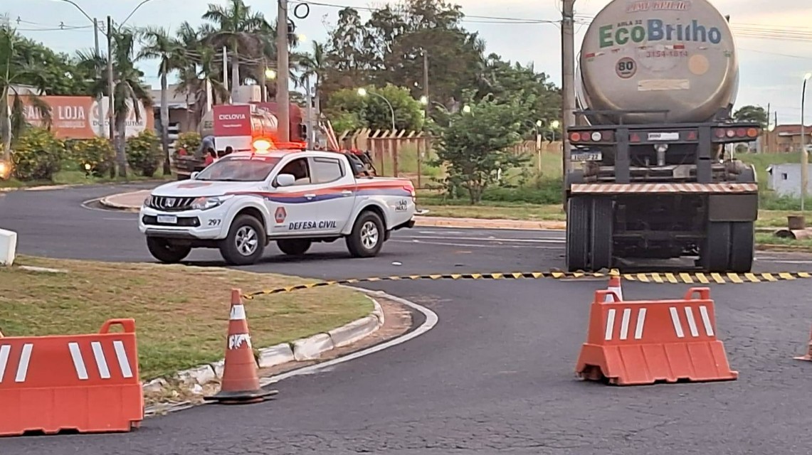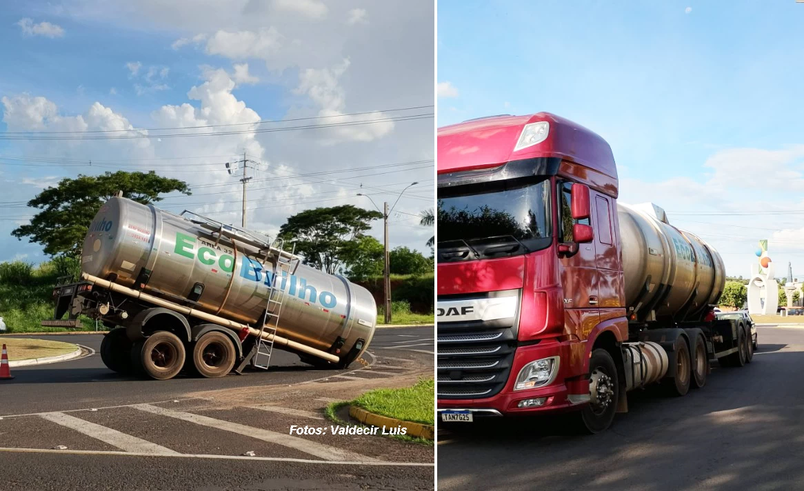 Motoristas que trafegavam por uma movimentada rotatória em Bastos, na região de Tupã (a 100 km de Marília), levaram um grande susto quando um dos tanques transportados por uma carreta se soltou.