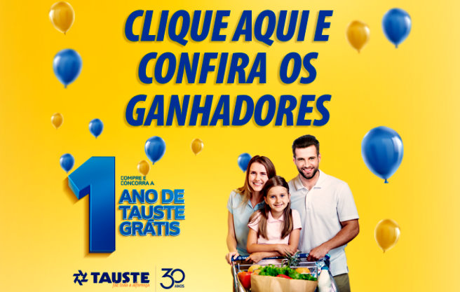 O Tauste Supermercados encerrou, com sucesso, a campanha “1 ano de Tauste Grátis" e sorteou R$ 420 mil em prêmios para os clientes da rede. Foram 300 prêmios distribuídos em vales-compra de R$ 1 mil e 10 prêmios de R$ 1 mil por mês durante um ano.