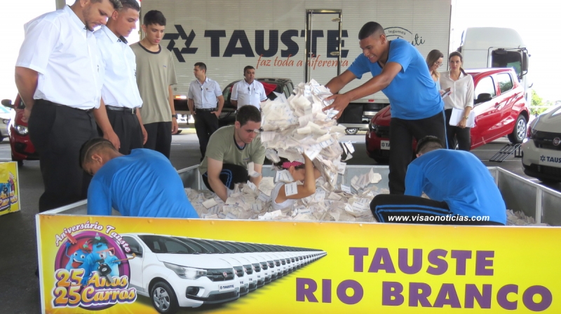 Em meio a um clima de muita expectativa e festa -- com mais de 4 milhões de cupons -- a rede de supermercados Tauste sorteou neste domingo os contemplados com os 25 carros em comemoração ao aniversário do grupo. Foi uma grande festa, com a participação de centenas de pessoas na loja Sul, em Marília.