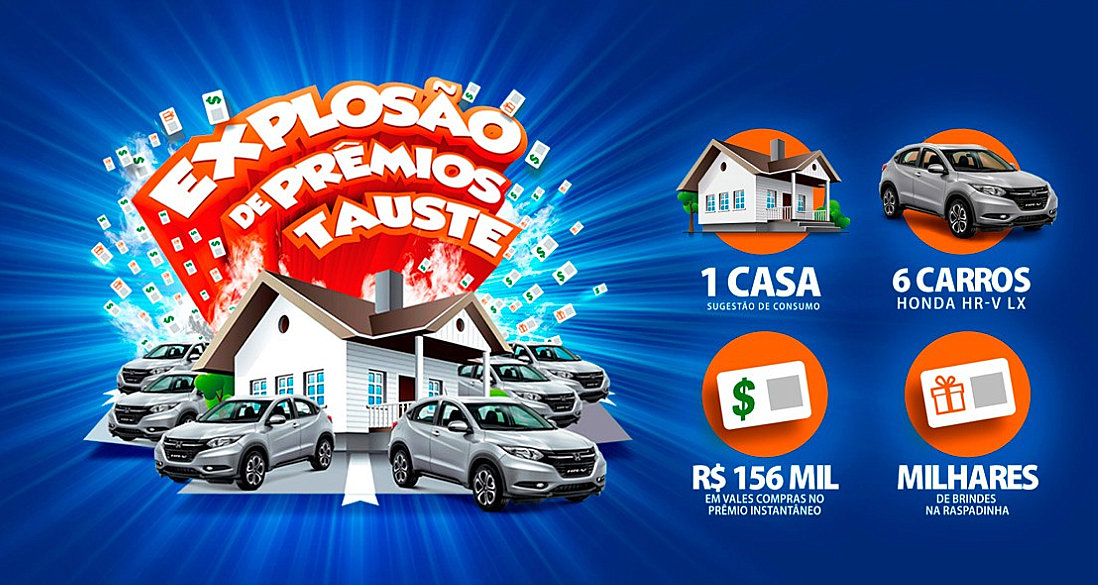 Os clientes Tauste terão até esta sexta (dia 12), para participar da promoção “Explosão de Prêmios Tauste”. O sorteio será realizado, de forma centralizada, neste