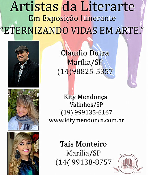 A exposição reúne trabalhos (inclusive alguns inéditos) dos artistas plásticos premiados Cláudio Dutra (Marília), Kity Mendonça (Valinhos) e Tais Monteiro (Marília), unidos pela arte e pela Literarte – Associação Internacional de Escritores e Artistas.