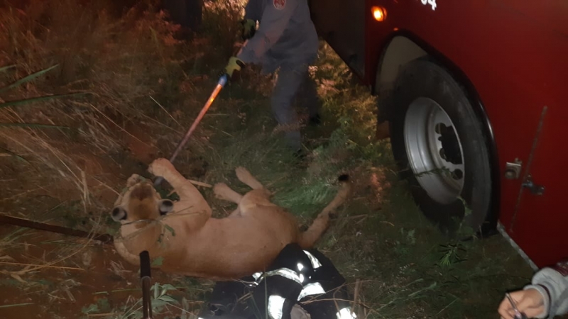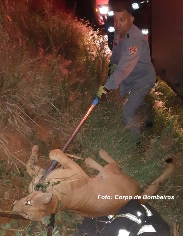 Após ser atropelado, o animal se escondeu numa mata e teve que ser novamente capturado.