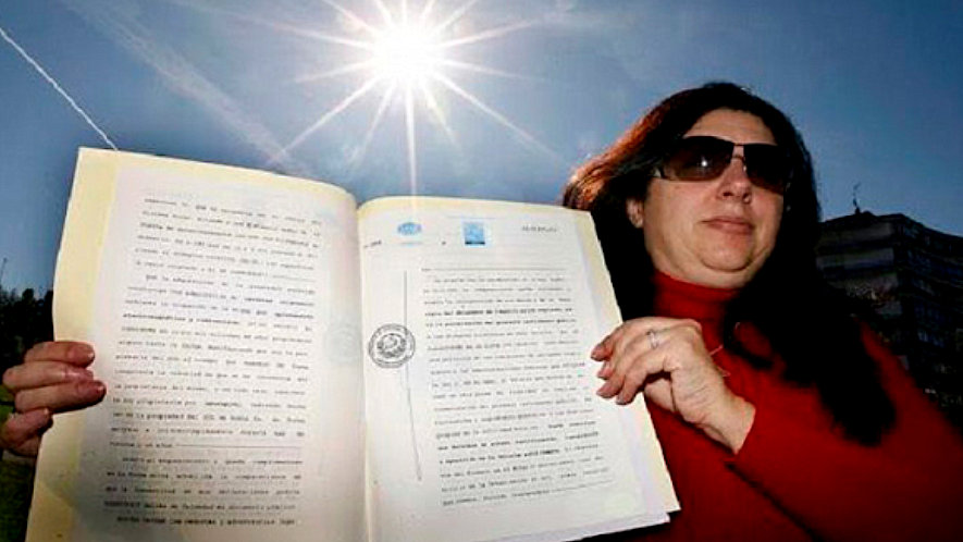 María Angeles Durán mostra documento no qual seria dona do Sol.A mulher começou a tentar ser dona do Sol em 2010, quando viu que um empresário norte americano chamado Dennis Hope havia feito o mesmo com a Lua, Marte, Vênus e Mercúrio.