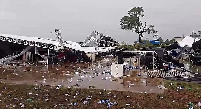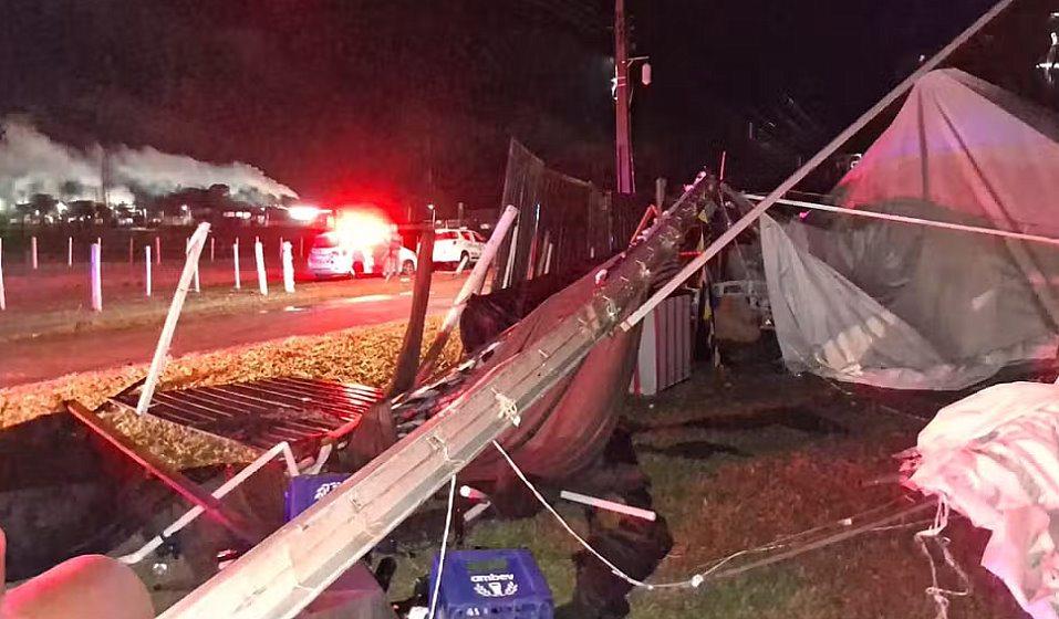 Um homem de 47 anos morreu e cerca de 40 pessoas ficaram feridas após o desabamento de uma estrutura metálica montada no Aeropark Clube de Voo Desportivo, durante uma festa universitária em Regente Feijó (cidade fica ao lado de Presidente Prudente), na madrugada deste domingo (2). Foi durante uma tempestade quando ventos de 95 km/h atingiram a cidade e destruíram a tenda.