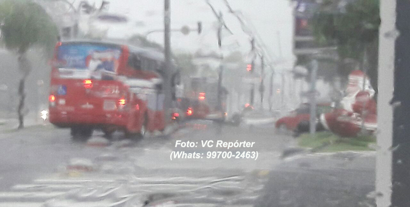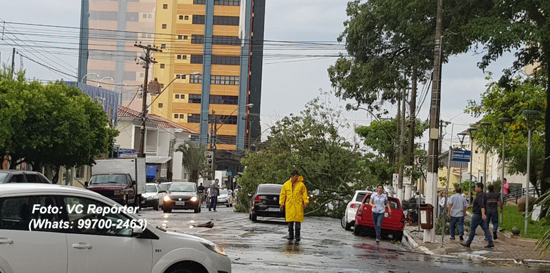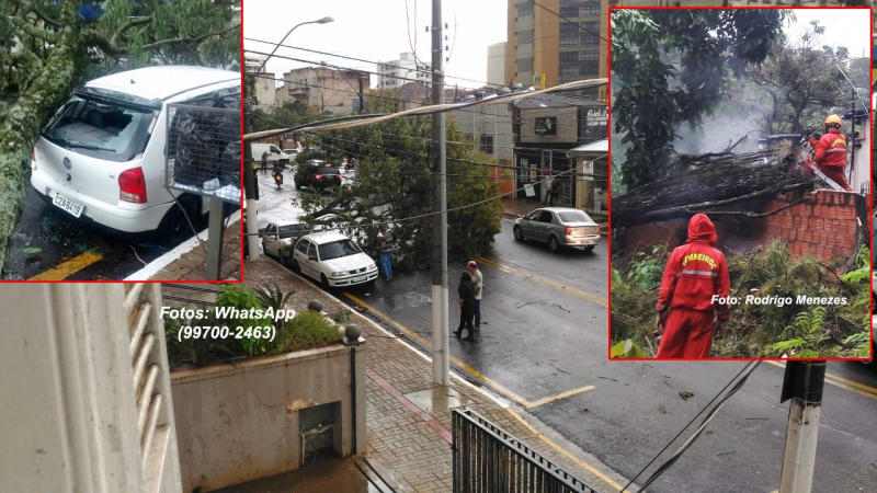Também foram registradas ocorrências de quedas de árvores pela cidade. O caso que mais chamou a atenção foi de uma em frente a Prefeitura que caiu em cima de um carro oficial.