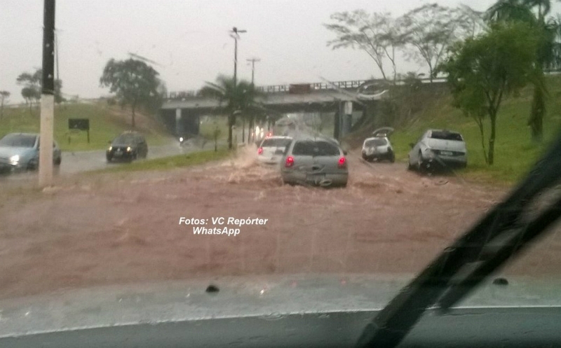 Os alagamentos estão sendo registrados em diferentes pontos da cidade, como na avenida João Ramalho e também no trecho urbano da BR-153 (avenida Jóquei Clube). Pela foto enviada por internauta, uma viatura da Polícia Militar teria ficado "presa" na enxurrada que atingiu a alça de acesso da rodovia Transbrasiliana.