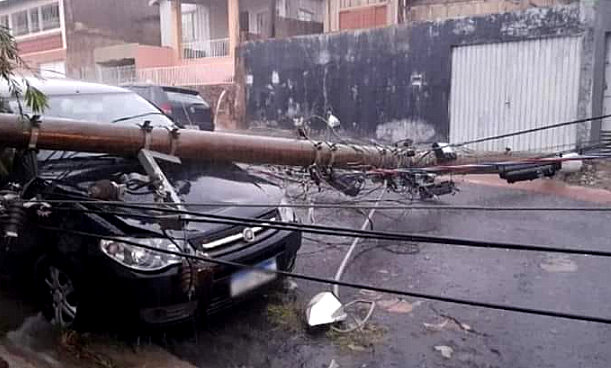 Em Bauru, a Defesa Civil divulgou nesta manhã um balanço dos estragos causados pela chuva forte (foto). Foram registradas 75 quedas de árvores, três destelhamentos de imóveis e quedas de muro, postes e até caixa d'água, além de alagamentos e vias interditadas. Muitas das árvores caíram sobre automóveis. Alguns bairros ainda permanecem sem energia.