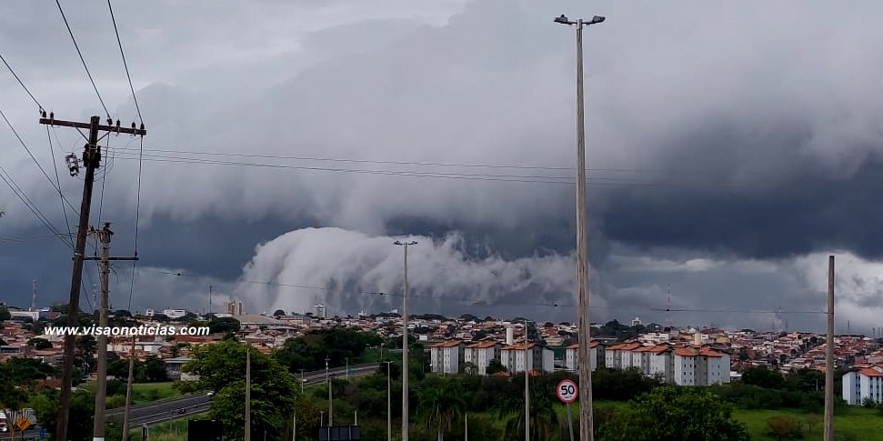 Depois de um dia de muito calor e tempo abafado, por volta das 15h nuvens pesadas começaram a se formar e, conforme a previsão, veio a chuva. Só que em forma de tempestade, com ventos fortes, nuvens de poeira, granizo e chuva. Boa parte da cidade de Marília ficou sem energia por quase uma hora.