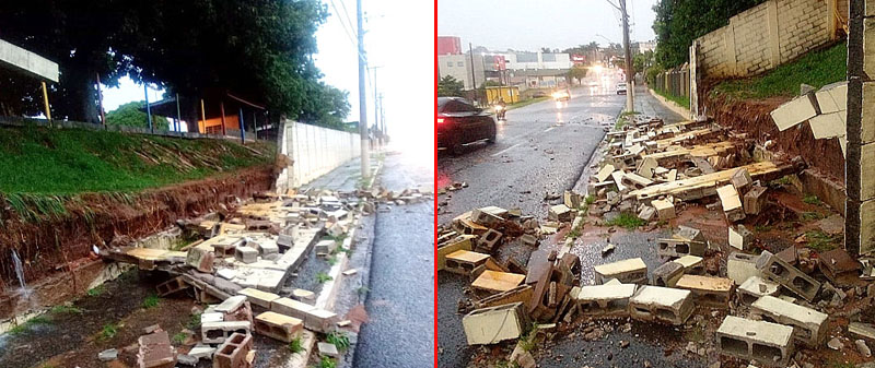 De acordo com a Prefeitura os muros da EMEI Sambalelê e da creche Nossa Senhora da Glória, ambas na zona sul da cidade, acabam desabando devido ao volume excessivo de água.