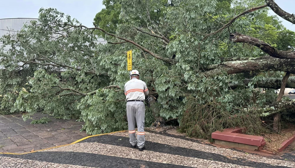 A queda de uma árvore na Rua 7 de Setembro, em frente à Escola Totó, danificou a rede elétrica local, o que pode causar interrupções no fornecimento de energia. Equipes da Defesa Civil, da Prefeitura e da CPFL estão no local trabalhando para resolver a situação o mais rápido possível. "Felizmente, não há registros de feridos, e a situação está sob controle", informou a assessoria de imprensa da Prefeitura de Vera Cruz.