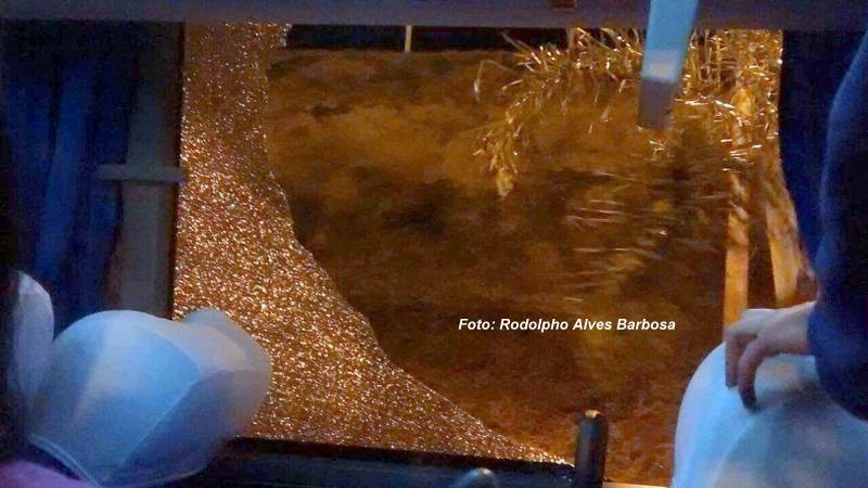 As pedras atiradas pelos criminosos tentavam intimidar o motorista do ônibus a parar e logicamente facilitar a invasão da quadrilha para praticar o assalto.