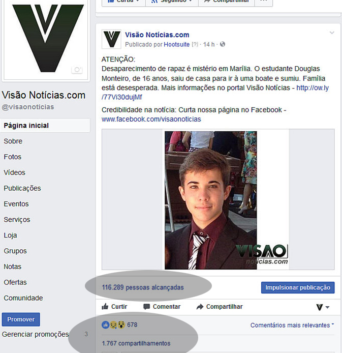 ônibus no bairro Jardim Califórnia que ligou para o irmão do rapaz. O caso teve grande repercussão em Marília, mobilizando as redes sociais na cidade e toda região. Só no portal Visão Notícias, a postagem teve mais de 116 mil pessoas alcançadas e 1.767 compartilhamentos.