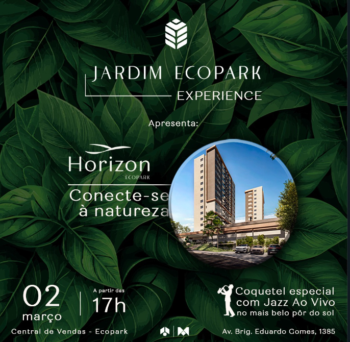 O “Jardim Ecopark Experience” será a partir das 17h, na unidade da Toca Ecopark na Avenida Brigadeiro Eduardo Gomes e irá ser um “Test-Drive” de como é viver ao lado de um parque ou bosque, desfrutando do conforto da cidade com a beleza da natureza.