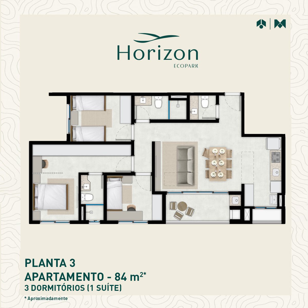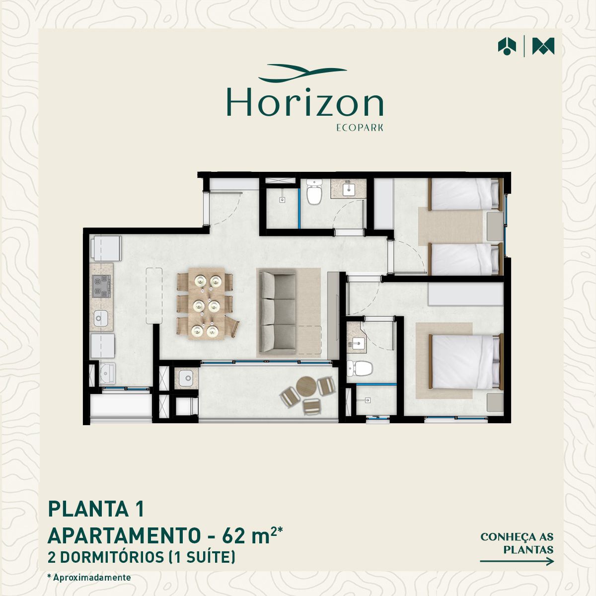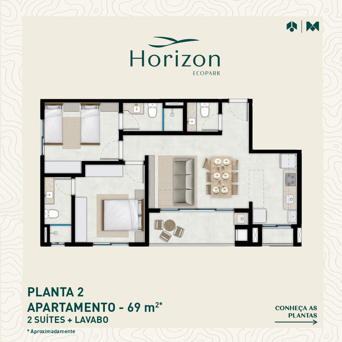 O Horizon é o único em lançamento cm opção de duas suítes, lavabo e varanda gourmet.