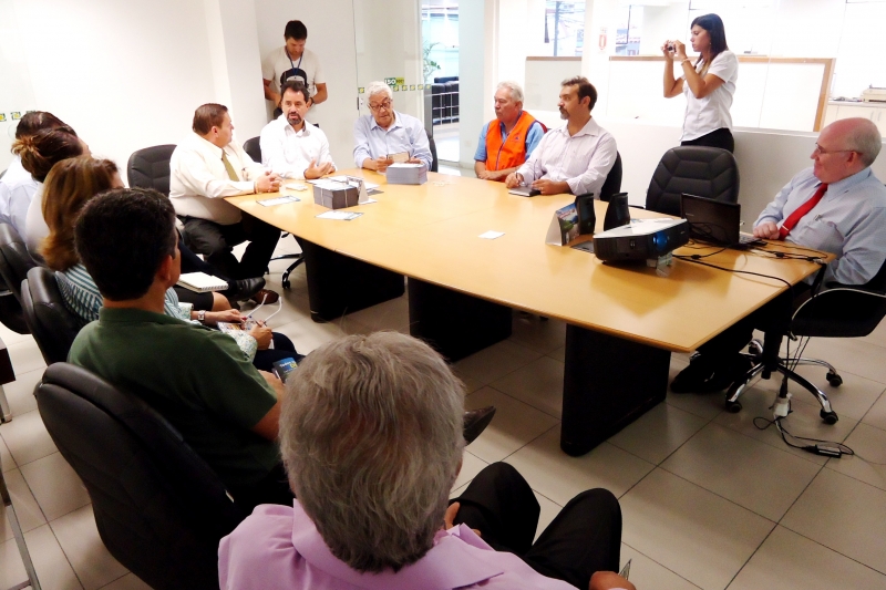 Reunião na sede da Associação Comercial e Industrial de Marília (Acim), entre dirigentes da Prefeitura Municipal, Vigilância Sanitária e diretores da entidade, para iniciar um trabalho de conscientização sobre o problema que a dengue causa na cidade e principalmente no setor empresarial.