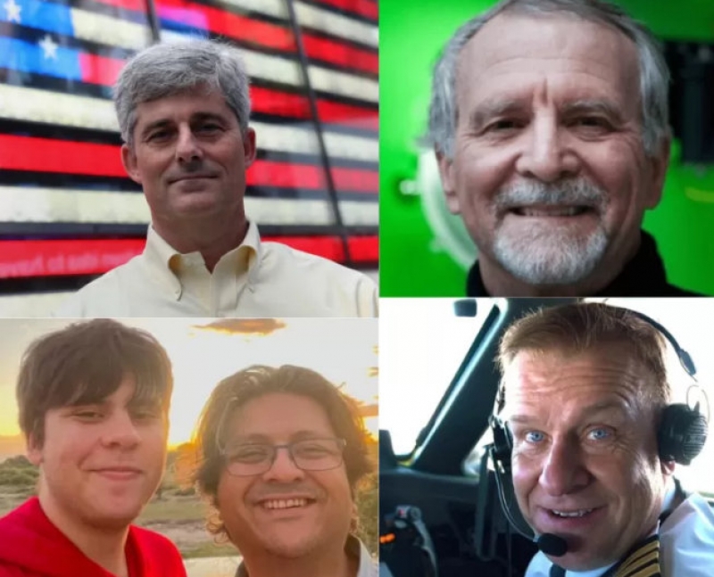 São eles: Stockton Rush, presidente da OceanGate; o bilionário Hamish Harding; Shahzada e Suleman Dawood, um empresário paquistanês e seu filho; e Paul-Henry Nargeolet, ex-comandante da Marinha Francesa e considerado um dos maiores especialistas do naufrágio do Titanic.