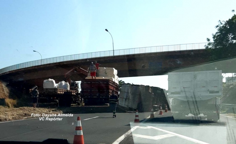 O veículo permaneceu a noite toda no local e hoje cedo a empresa responsável teve que iniciar o transbordo da carga para que só depois possa ocorrer o destombamento. Por isso, a Polícia Rodoviária teve que fazer um desvio no local.