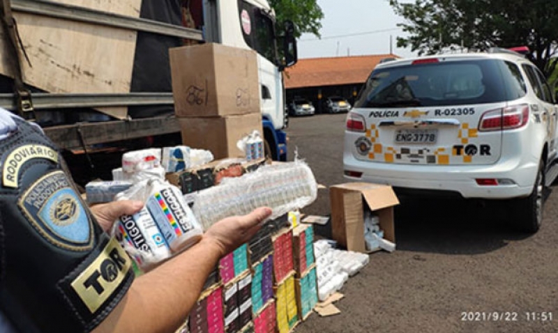 De acordo com a corporação, também foram localizados no caminhão cigarros eletrônicos e essências de narguilé, todos sem documento fiscal.