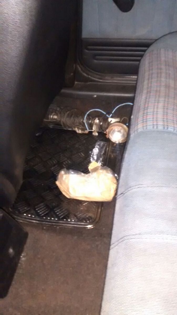 Ainda em movimento, os policiais avistaram um indivíduo arremessar algo dentro do veículo. Durante a abordagem, foi constatado que se tratava de um tablete de maconha.