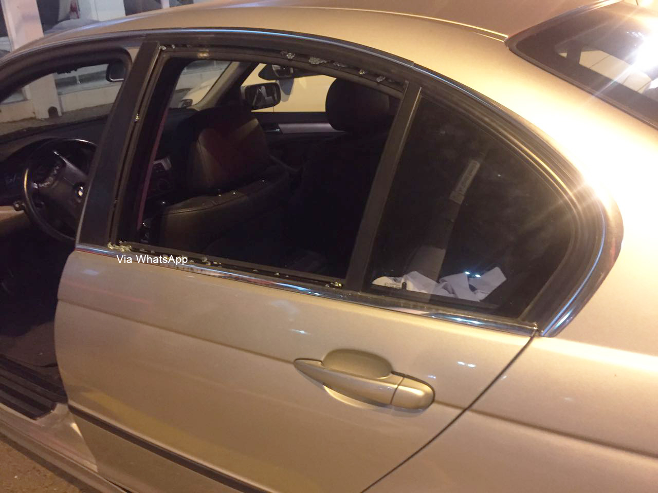 Carro importado com o vidro estourado: prejuízo e confusão.