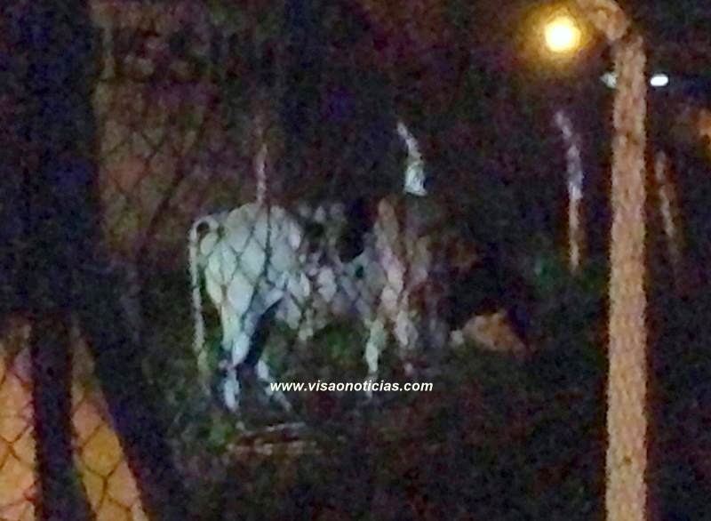 Após cruzar a rodovia, pulando a mureta de concreto, o animal foi acuado durante alguns minutos pelos Integrantes do Corpo de Bombeiros no estádio Pedro Sola. Lá, investiu contra a reportagem que tentava fotografá-lo.