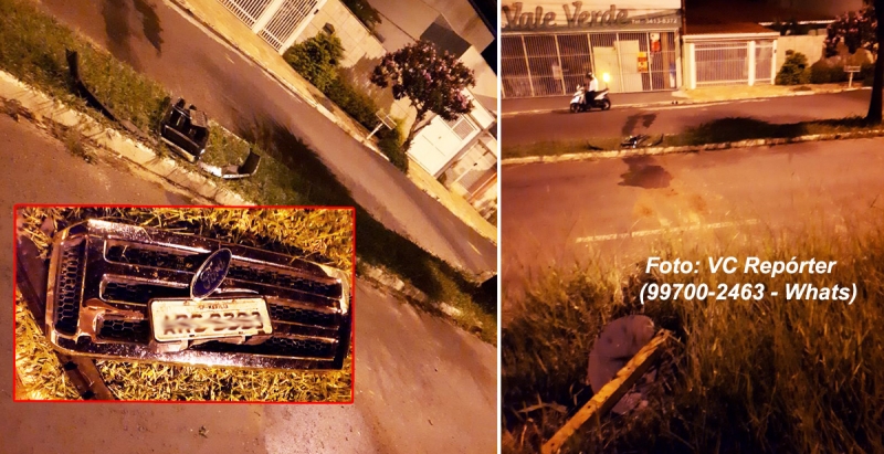 literalmente voou de uma rampa que separa o empreendimento da avenida Brigadeiro Eduardo Gomes. O motorista fugiu, mas deixou a carenagem dianteira com a placa (foi fotografada). Depois, o motorista de outro veículo veio buscá-la.