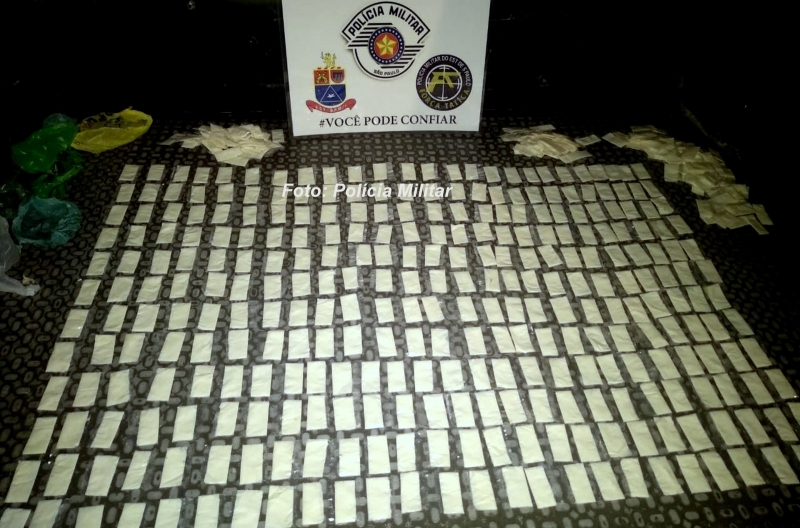 Ao verificar as informações, conseguiram deter o suspeito e em seguida foi feita uma varredura na casa onde ele estava. Os PMs localizaram em cima de um armário uma sacola com 494 invólucros da droga, que totalizaram 366 gramas.