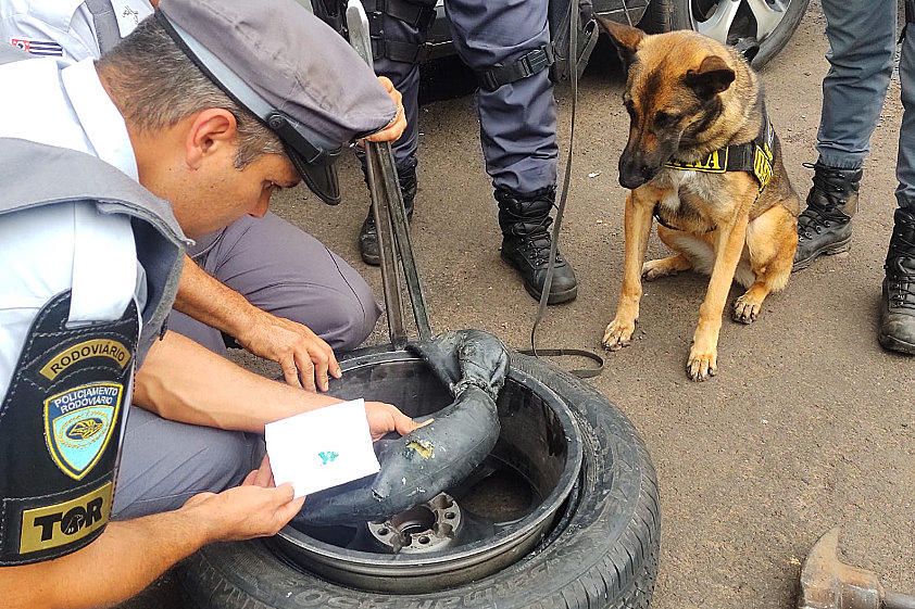 Como não havia nenhum compartimento com fundo falso, foi pedido apoio ao Canil do BAEP (Batalhão de Operações Especiais da PM).