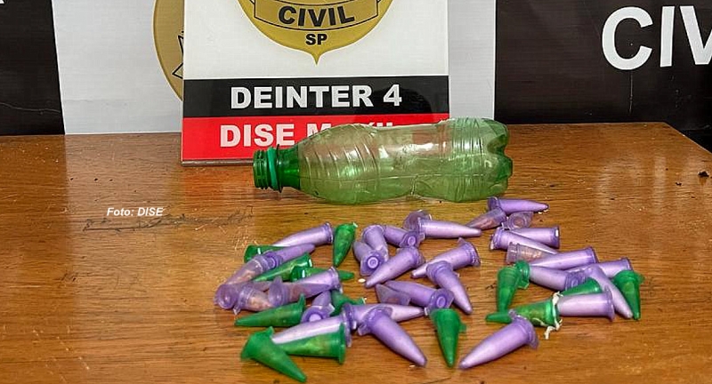 Em operação no bairro Santa Antonieta, na zona norte da cidade, eles prenderam um rapaz de 29 anos que havia escondido 46 porções de drogas (entre cocaína e crack) num desses repicientes, aliás de tamanho pequeno.