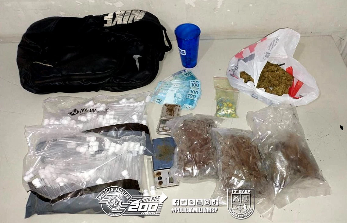 Encontraram diversas porções da droga, comprimidos de fabricação artesanal de drogas sintéticas, balanças digitais, tubos de ensaio e uma quantia em dinheiro em espécie.