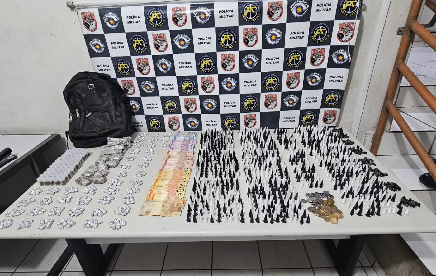 Dentro da mochila que trazia, os policiais encontraram 1.024 porções de cocaína, 427 de crack, 84 de maconha e também R$ 919,00, dinheiro referente às demais porções de entorpecentes que já tinha vendido. Ele foi levado à Central de Polícia Judiciária e autuado em flagrante. Além de ficar preso, agora a família terá que conseguir dinheiro para pagar o fornecedor dos entorpecentes que também ficou no prejuízo.