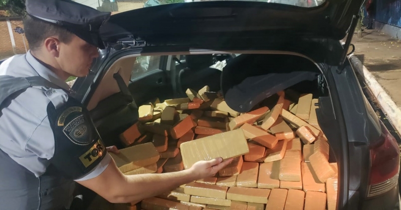 Dentro do carro, foram encontrados 470 de tabletes de maconha que totalizaram 337 quilos.