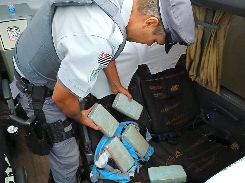 Mas, a droga não estava escondida na bagagem. Os patrulheiros encontraram cinco tabletes de cocaína em um fundo falso em duas poltronas do ônibus.