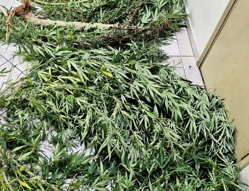 Durante a averiguação, os policiais, já em cima do telhado de uma das residências, notaram que no imóvel vizinho havia diversos pés de uma planta com características de Cannabis sativa (maconha).