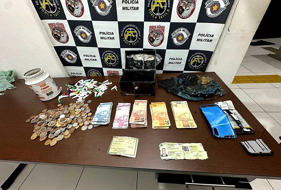 No interior do imóvel foram apreendidos diversos pinos de entorpecentes, dinheiro proveniente do tráfico e parte da droga queimada, causando um prejuízo estimado em R$ 20 mil. Os dois foram autuados em flagrante pelos crimes de tráfico e associação ao tráfico de drogas. A usuária que estavam comprando entorpecentes foi ouvida como testemunha e liberada em seguida.