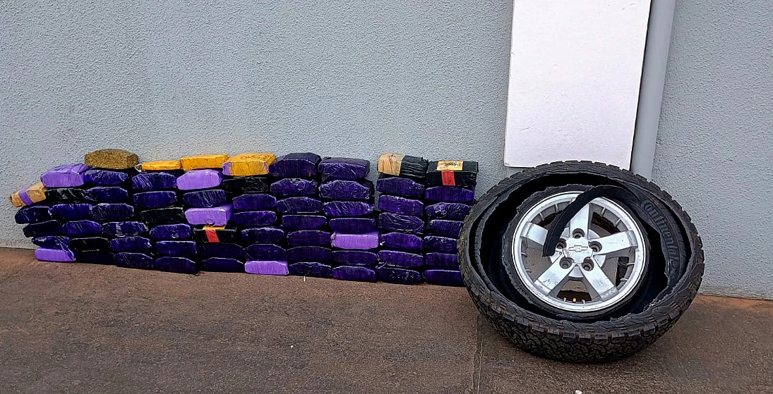 O mais curioso é que a droga estava sendo transportada nos quatro pneus da caminhonete. Foram apreendidos 67 tabletes de maconha que pesaram pouco mais de 88 quilos. O casal foi encaminhado à Central de Polícia Judiciária e autuado em flagrante. Foram apreendidos também os dois celulares e certa quantia em dinheiro.