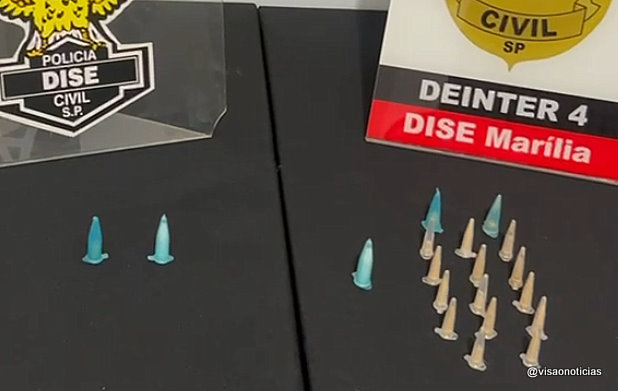 Além de uma porção de crack e uma porção de cocaína em seu bolso, os investigadores encontraram no local onde ele costumava buscar a droga, uma “muca” (esconderijo) contendo mais uma porção de cocaína e 16 porções de crack.
