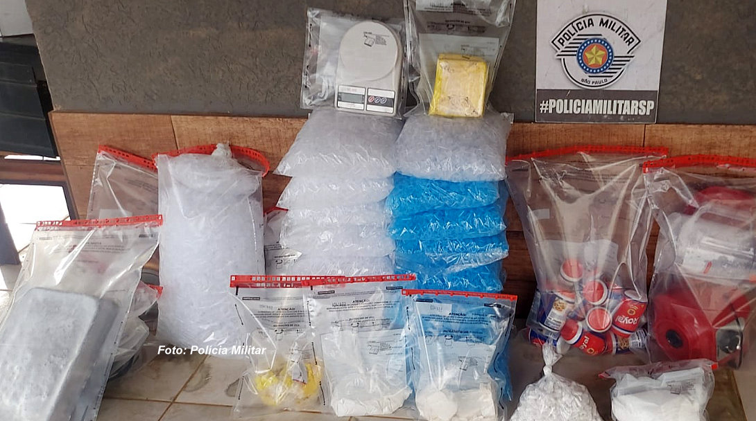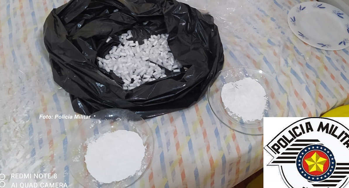 A operação ocorreu em uma propriedade rural, situada na Estrada “Jaboticabeira”. No interior da residência, os policiais encontraram grande quantidade de drogas espalhadas em mesas, camas e no chão.