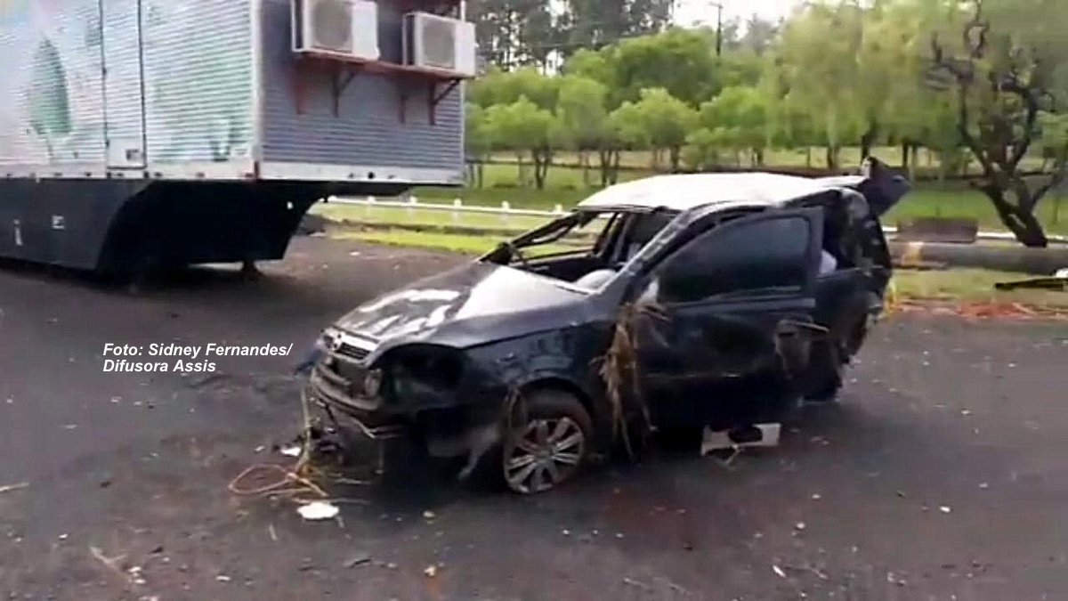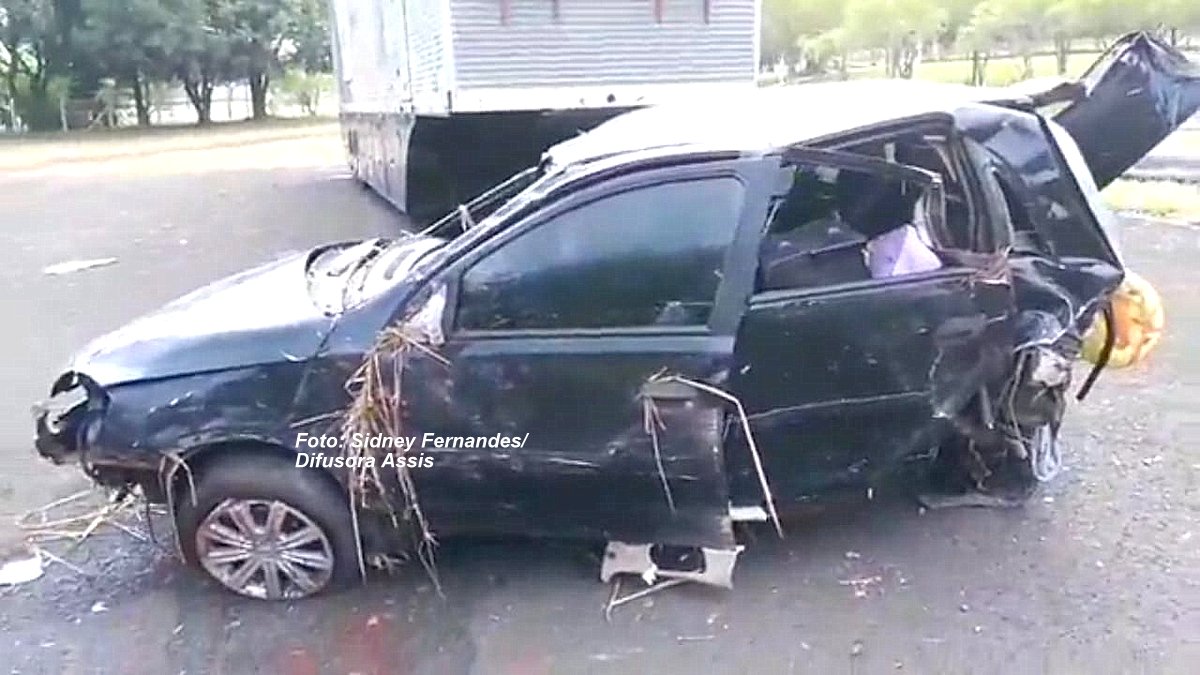 Em determinado trecho da rodovia, ao que tudo indica em alta velocidade, colidiu violentamente contra a traseira de um Corsa, placas de Apucarana, onde viajavam quatro pessoas (três da mesma família e um amigo).