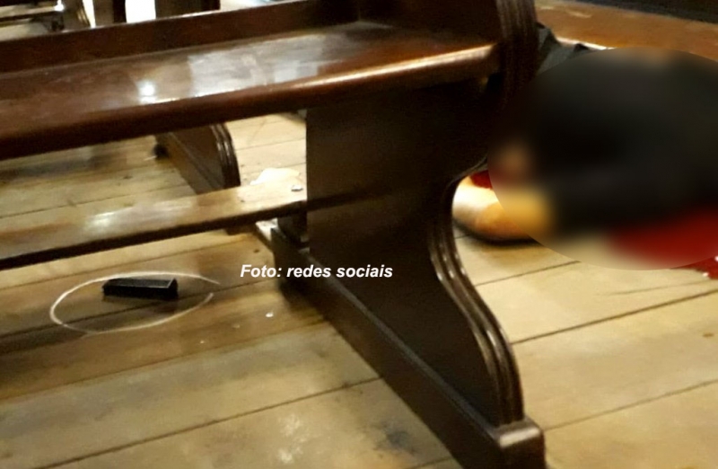 Em seguida, policiais militares entram na igreja e perseguem o atirador. As imagens não mostram depois deste momento.