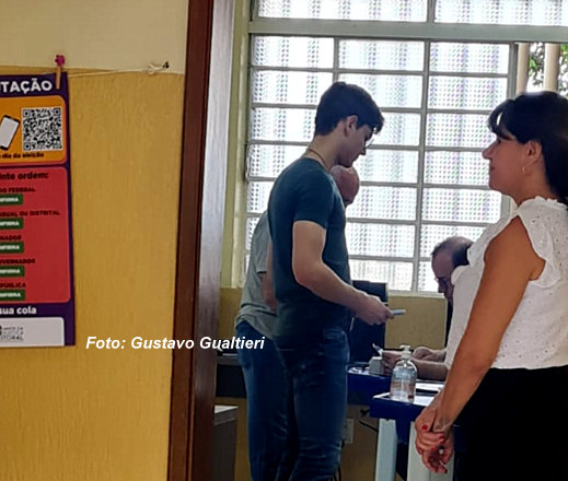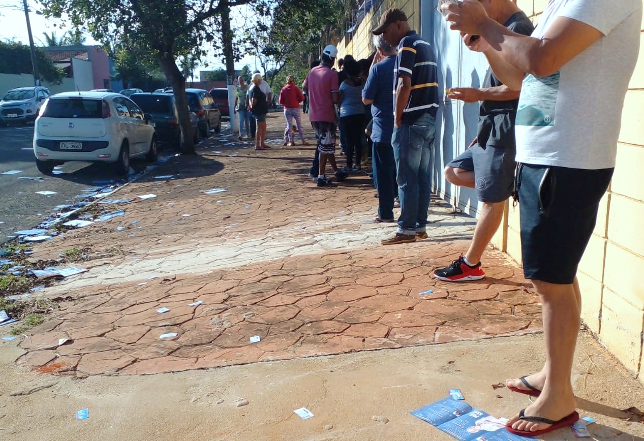 Santinhos de candidatos e fila nos locais de votação em Marília.