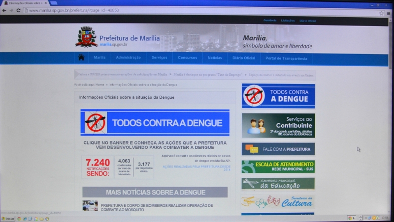 Desde os primeiros casos estamos divulgando os números e também as ações para combater o mosquito e as campanhas de orientação aos moradores para eliminar os focos. Agora, com o auxílio da internet acreditamos que a comunicação será ainda mais eficiente”, destacou o prefeito Vinicius Camarinha.