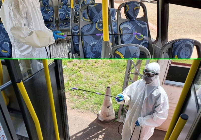 Todos os profissionais que realizam a limpeza e pulverização da frota operante, estão devidamente protegidos, utilizando todos os equipamentos de proteção individual, ou seja uso macacões, óculos, luvas, máscaras etc para não corram risco de contaminação do local e consigo mesmo.