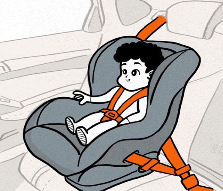 Também tenha certeza de que o cinto que prende a criança na cadeirinha esteja afivelado corretamente e bem ajustado – rente ao corpo e sem folgas.